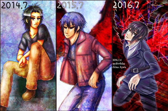 #画力変化ビフォーアフター アヤトくん誕生日絵で比較。 14年と15年は画力に変化があったというより単純に描き方を変えただけのようにしか見えなくて…。今も上手くないけど1年前や2年前よりは上達してるといいな…