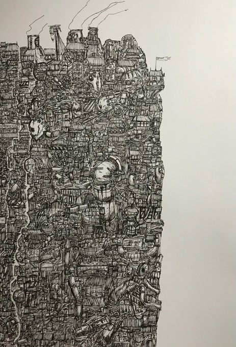 ヒツジといいます!筆ペンとミリペンでハードめな絵を描いている者です。