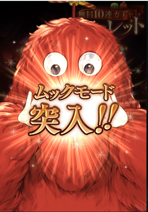 今日のグラブルのガチャはガチャピンモード!からの30連ゴールドムーンにて終了と思われたがムックモードに突入!そして10連で終了したが火ジークが加入したのでよき!