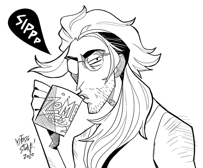 Kix is an undead streamer personality because spirits needs Let's Plays too, and Fosse is 100% happy to convince you that he was once a great pirate captain but he has no way to prove it. Mostly he just actually writes steamy romance.