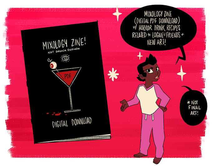 We're at 80%!! WOW!! Getting so close!! There's going to be a nice horror-themed mixology recipe zine (digital download!) as a nice goodie bonus! MMM now you'll know what to serve at Halloween!