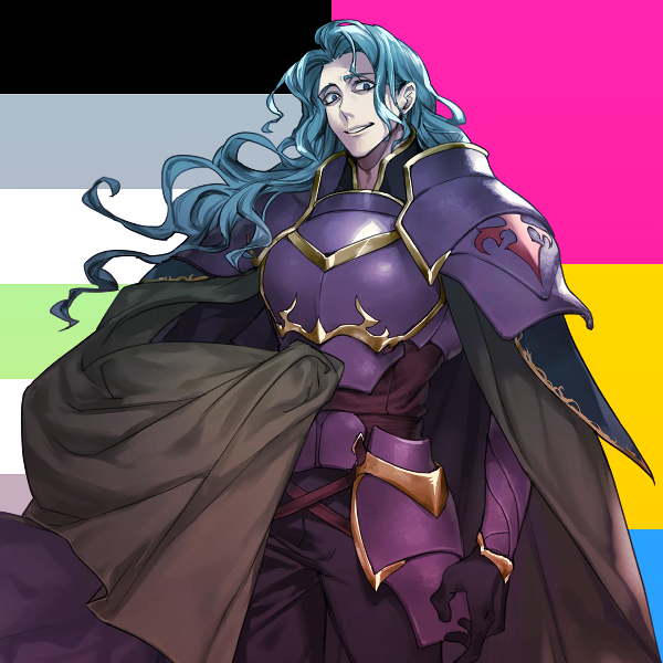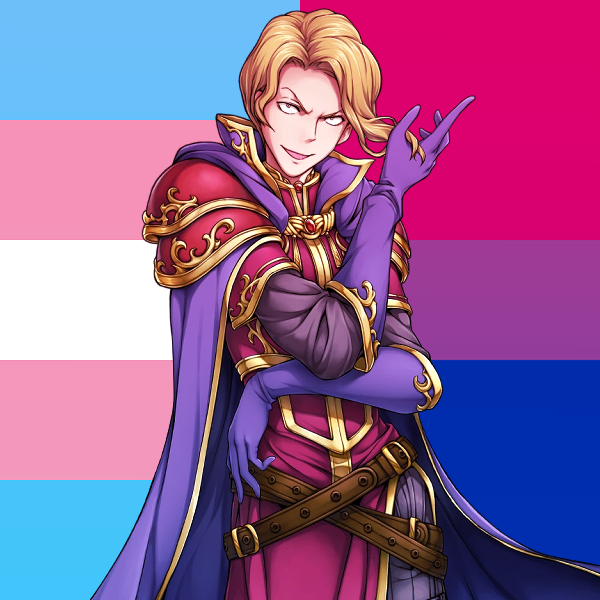 june rolling around finally gave me an excuse to put these together lol, pride icons of my feh villain team with my gender & sexuality headcanons for them 🥰