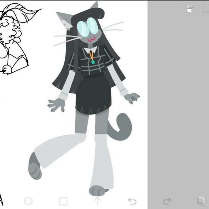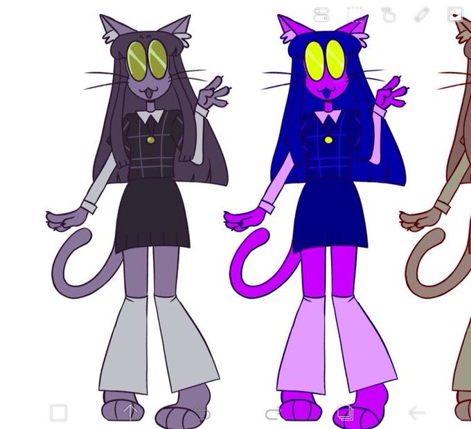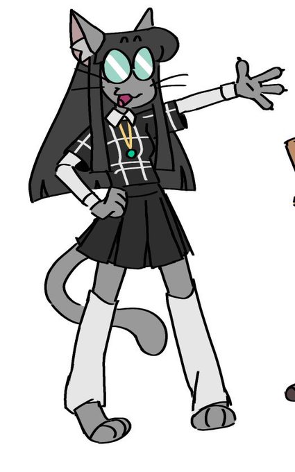 @asgorudy this is harlow. she is the "main character" and the oc universe is called harlowverse but theres not really any coherent storyline . shes 19 and a cat girl creature and has very poor vision and those are glasses not eyes. she lives in a big treehouse in the forest
