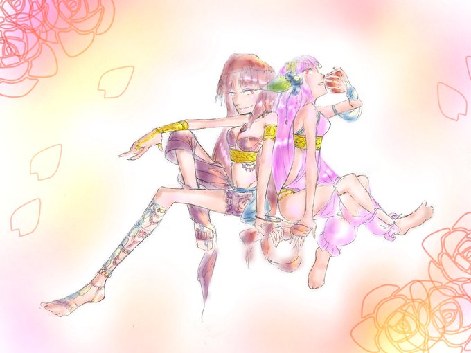 @kei_dwp123 わゆさん線画塗れました~ありがとうございました!(胸の辺り線足してます💕 )背景は素材ですw