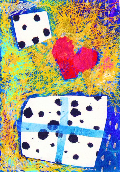ハートのコラージュ。ハートやキラキラしたものを見ると何だかハッピーな気分になります。#heart #acrylicpainting #artwork #collage #drawing #illustration #watercolorpainting #ハート #アクリル画 #アート #コラージュ #イラストレーション #イラスト #水彩画