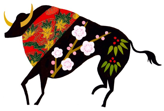 「歳寒三友」を表現してみた何処かの国のox、アジア文化に興味津々。#illustration #acrylicpainting #artwork #collage #ox #雄牛 #イラストレーション #アクリル画 #コラージュ