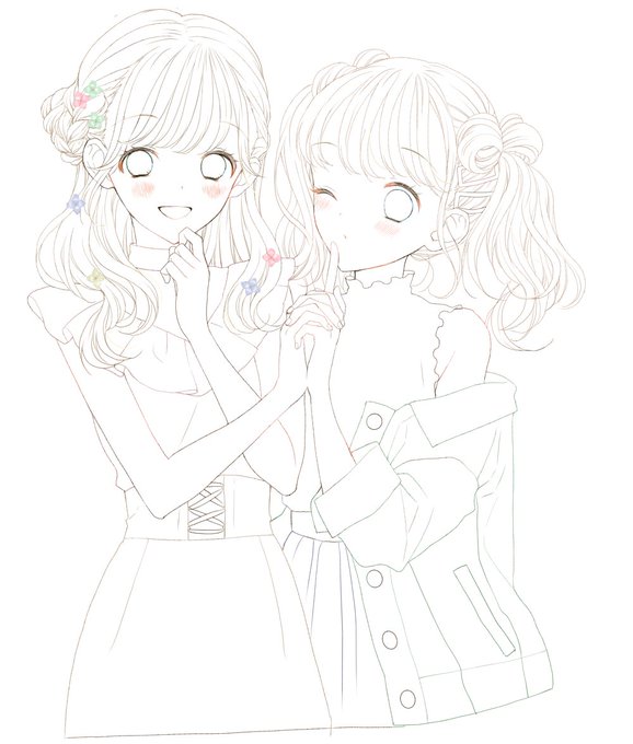 #皆さん線画と塗った後を見せてください ヘアアレンジパーフェクトBOOKの表紙のイラストです🌸