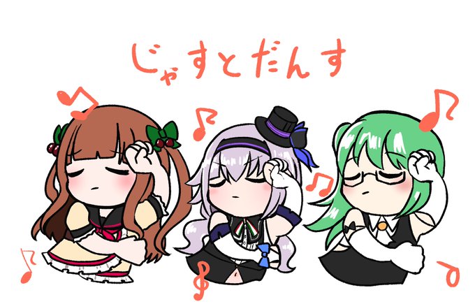 神妙な面持ちで踊るトリオ #すずあーと #ピノの自由帳 #ちぇり絵