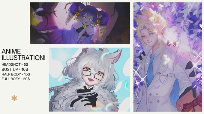 @Victoria__Wil Hello!! I draw in anime style here are some samples anf my rates