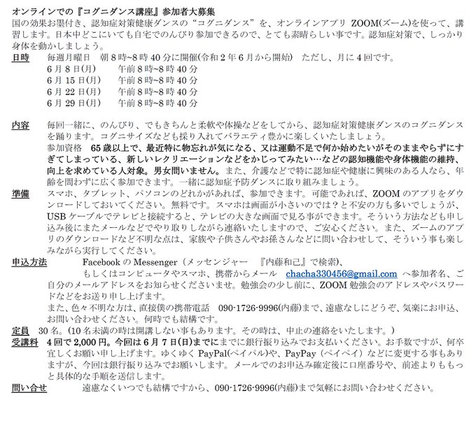 (名古屋市北区のNPO法人 コグニダンス講座)2月3月合計4回講座しますことよ。コグニダンスは、唯一国立の研究機関が、効果ありと科学的に実証した、認知症対策健康ダンスです事よ~。講座はあたくしダンサーお内藤がいたしますことよ。MCI(軽度認知障害)はコグニダンスで治癒できます #コグニダンス