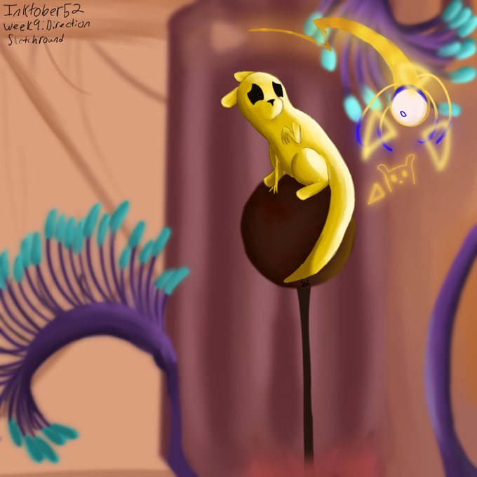 Posting this one on its own but will add it to March as well. I was lost on what to do for this prompt for awhile but absolutely loved how this one came out, my favorite so far this year. #inktober52 #inktober #direction #rainworld #slugcat #overseer