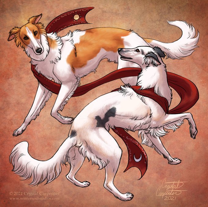 A Silken Windhound dance of celebration! Both doggos belong to my friend Laura, how could I resist drawing this wonderful breed?