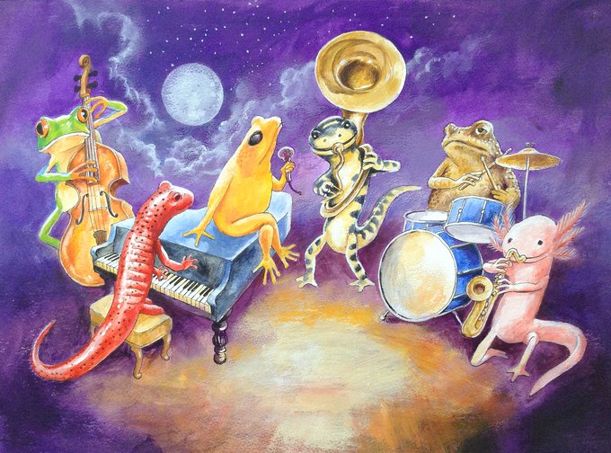 Salamander Ball Jazz Band 6 by Daniel Loveday @wireater via @artfinder #acrylic #painting #art https://t.co/6mgLocyDGV @Georgelovesart