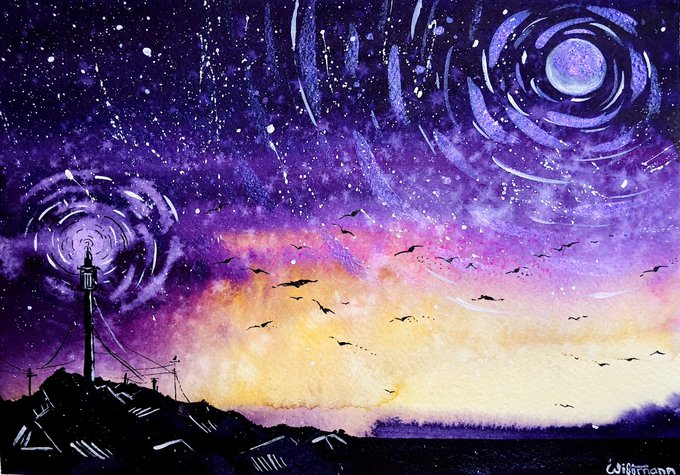 💜Purple Galaxy Night 💜 Watercolor painting in progress 🧑🎨