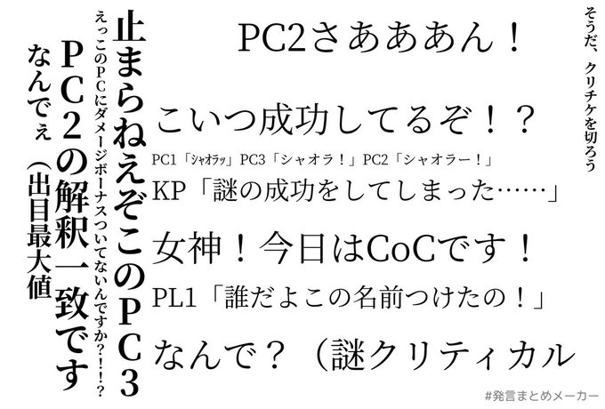 クトゥルフ神話TRPG 6版ダイスゲームシナリオ ネコと和解せよ ※敬称略 KP-鯖缶 PL/PC せぜき/Ledley Capricornus 和倉/Justia・Libra #和解せよ探索者 ノリと勢いで十二星座継続で行かせてもらって俺たちは和解できませんでした!!!!!!!!久々にレドリーさんと会えてハピ