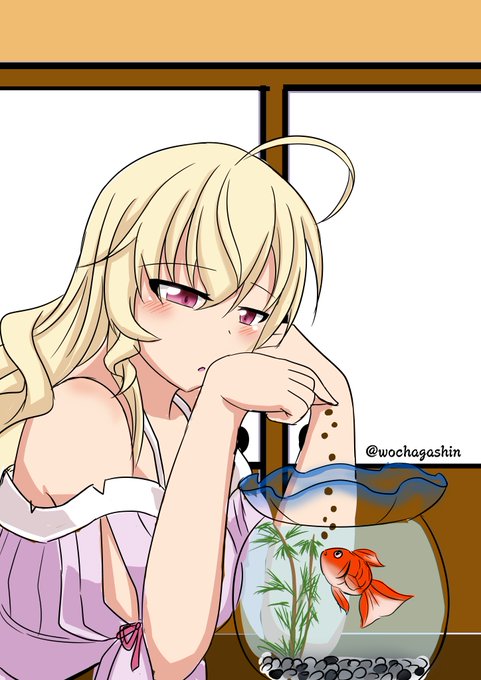 #御城プロジェクト版深夜の真剣お絵描き60分一本勝負 お題「金魚」 ユッセ「王様早く来ないかなぁ…」