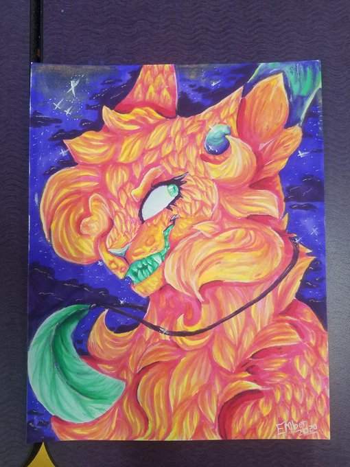 @DestinytoMoon Hello, I'm Ember! Im a 14 y/o nonbinary digital/traditional artist and i love drawing cats and neon colors