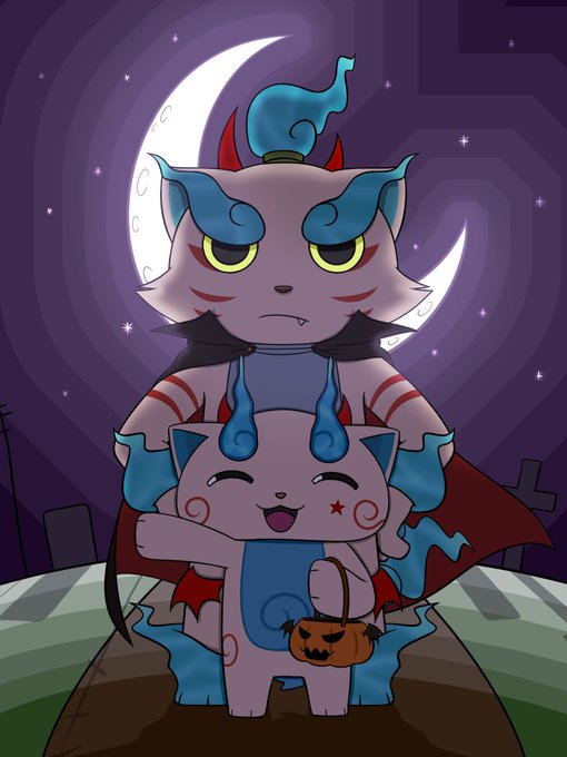 #YokaiWatch [요괴워치] 곧 할로윈이니까.. 백멍이랑 시시코마 투샷 그리면서 또 느끼는거지만 나 배경 진짜 못그린다.. 다음엔 패턴배경만 넣어야지 ;▽;