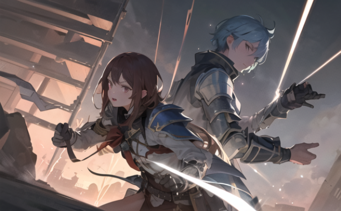 動きのあるペア、相棒感のある構図と画面効果を目指してみる #AIイラスト #AIart