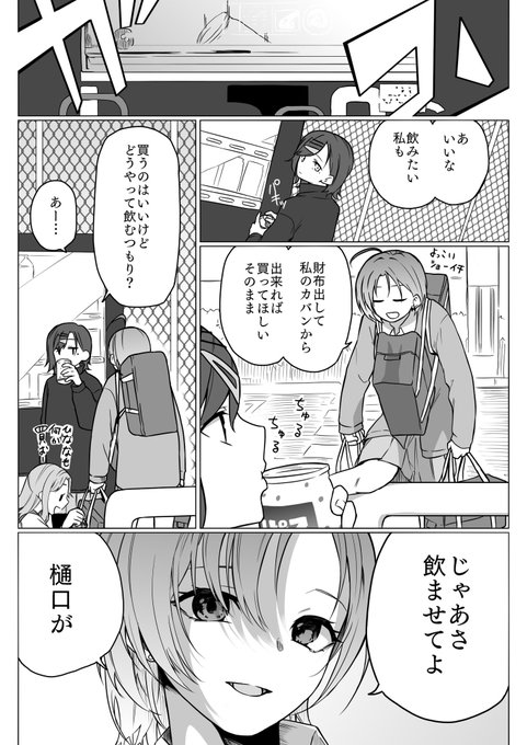 樋口が浅倉にジュース飲ませてあげる漫画。