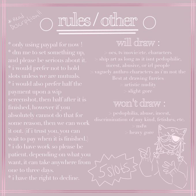more info on my instagram, same handle! pls consider commissioning this poor little meow meow )': rt's are appreciated!
