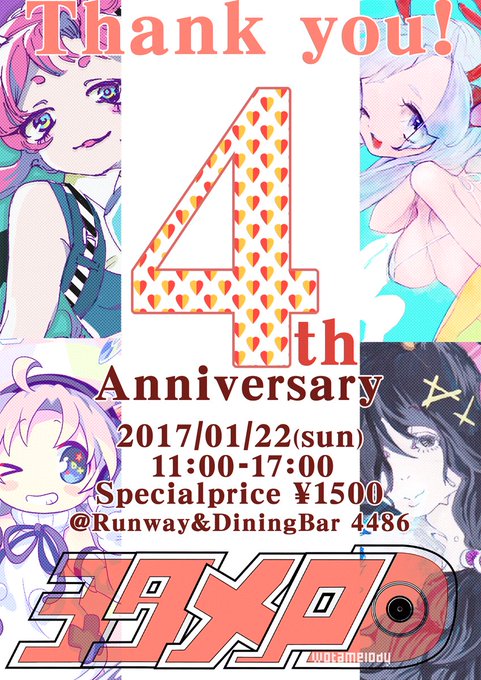 ㊗ヲタメロ4周年✌️✌️ ➡️2017年1月22日(日)⬅️ 🐔11:00〜17:00 👛1500円 🍻Runway&DiningBar 4486 【スペシャルゲスト】 VJユニットジュラリカ(From:香川SssELF/安直/ぷらおと) #ヲタメロ