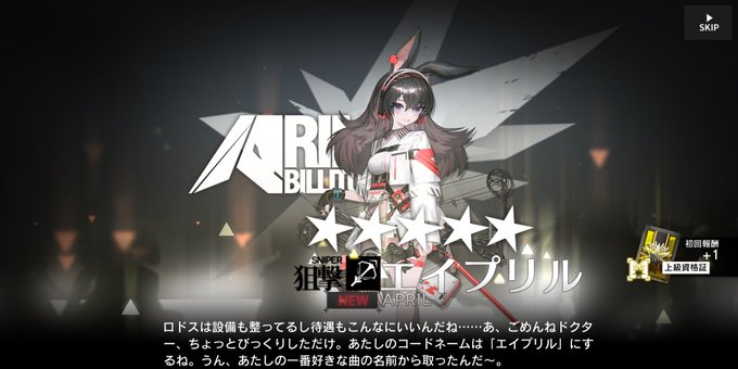お誕生日おめでとう!騎兵と狩人のPVを観たときから君の美しさに心を奪われたよ。君が来てくれた時は喜びの余りダンスを踊った程さ。水着姿も美しく敵をなぎ倒す君は最高のオペレーターさ!これからも一緒に困難に立ち向かって行こう!