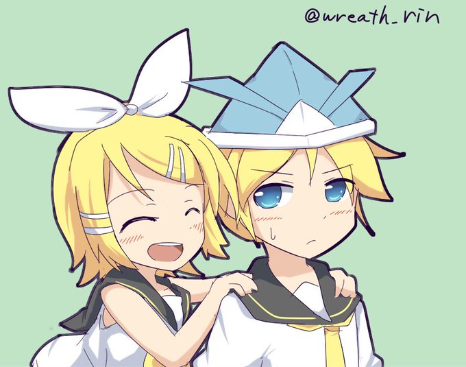 お題「こどもの日」 レン「こんなのかぶる歳じゃないんだけど・・」 リン「あははっ!似合う似合う」 #鏡音版深夜のお絵描き60分1本勝負