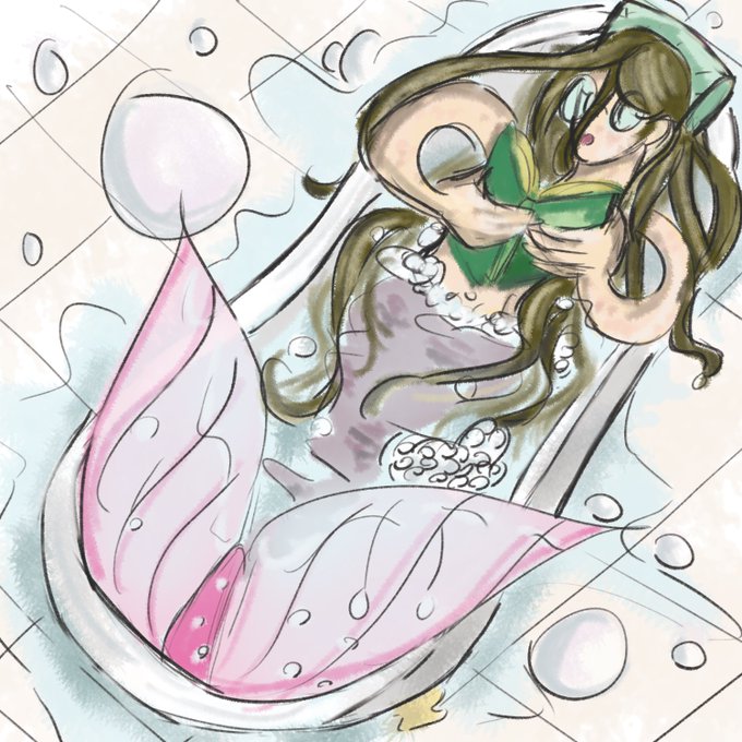 #ozuzomermay no.9! The prompt is bathtub and if this looks wonky, it's because I did this in a car. My mom decided we were going to be spontaneous and supportive to our family today which was fun. So I did this before dozing off #createdonsurface #mermay #photoshop Birds eye view
