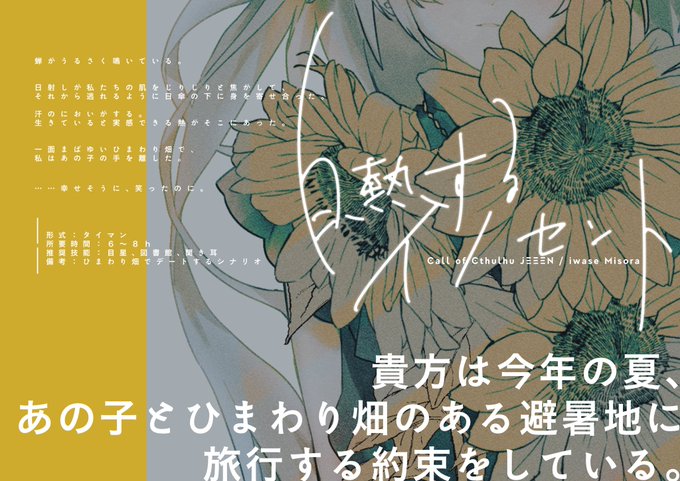 ¦ ...腕すらなくとも ¦後編「水を結んで、氷を解いて」 KP 作-みそ良 HO1 ロウ-伊月 戒 HO2 むじ-ヘルマ キャンペーン シナリオクリア