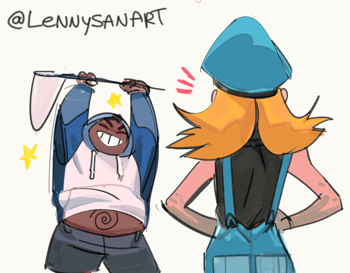 Just some spur of the moment Pokemon Gijinka designs of my two faves..... They're siblings and they love playing in mud while catching bugs.🌊🐛