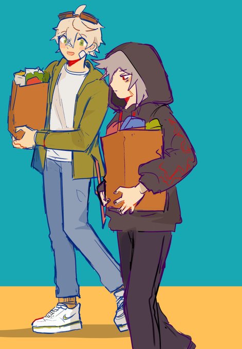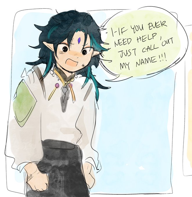 he wanders a little too far from home and finds a small village where lumine/aether reside and becomes friends (tentative at first) with them both