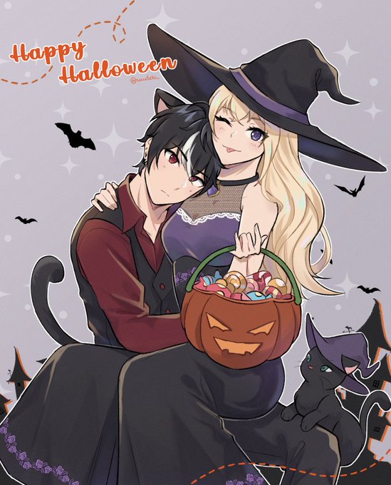 Happy Halloween 🎃 with the witch and her cat servant 🤭🐈⬛ #witchi_ocs