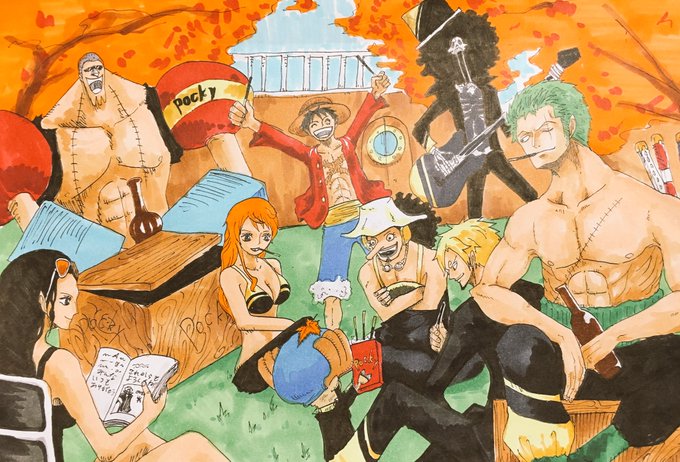 一味の賑やかさが伝わってほっこりします😂ロビンちゃんの読んでる本が気になる~笑チョッパーポッキーみんなに配ってる~かわいい~♥