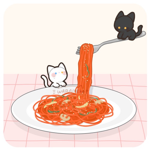 今日は食品サンプルの日🍝。 #猫イラスト #ゆるいイラスト