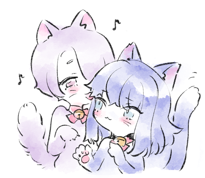 白にゃん朔にゃんのけづくろいだよ🎈