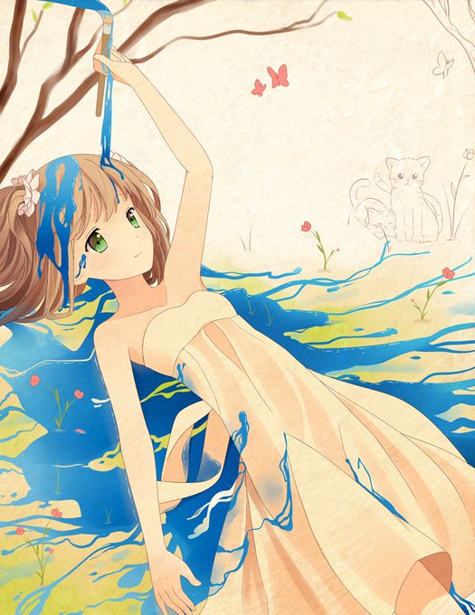 *Cherry poured down the blue paint in her head and she continued smiling with a smile on her face* Perfect! Finish!