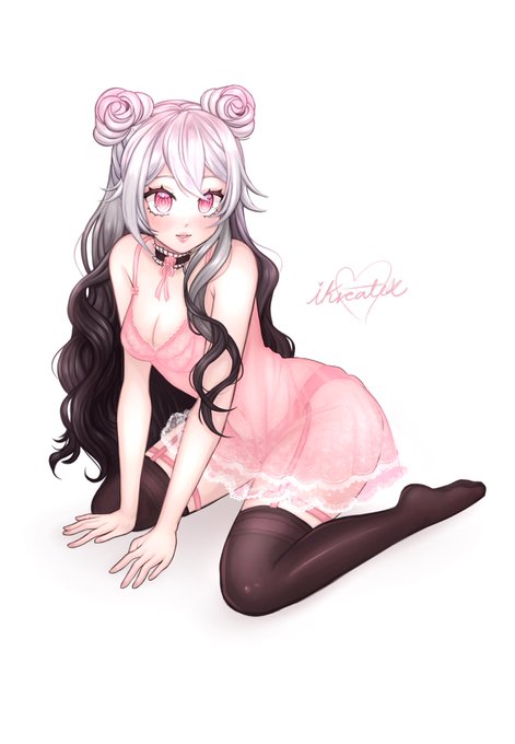 Version 1 (white background) of a painted commission I did for @typicallyrose_ she came out super pretty I’m so proud 🎀💗