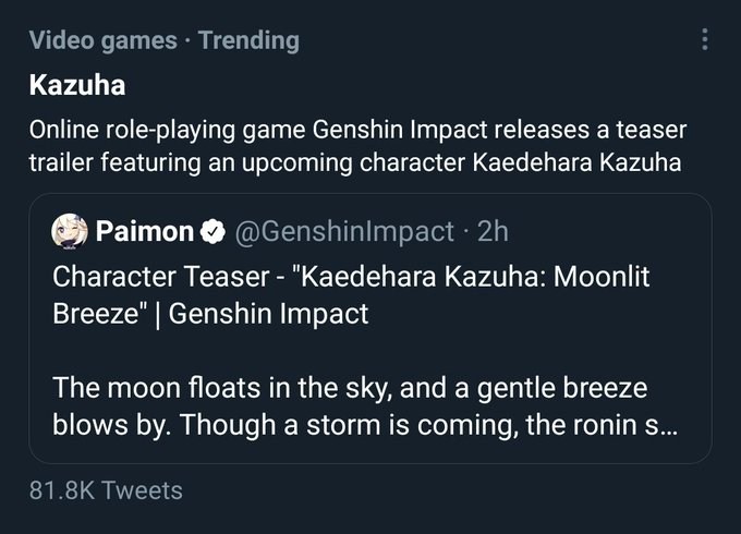 @stillbbh Usually anemo lumine but building geo rn and running it as I scavenge every treasure chest in liyue lmao and I switch out qiqi for Bennet when I need pyro