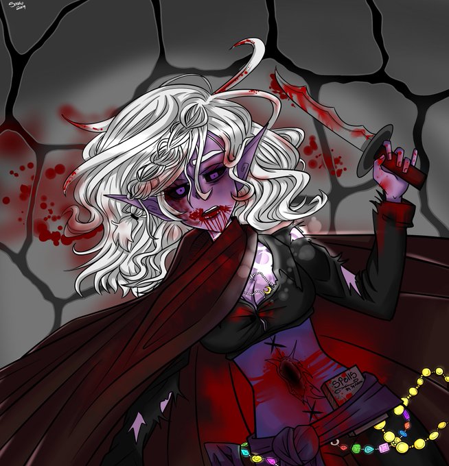 @PrismaFur Thanks for the thread!! I'm Saku! I love to draw cute n spooky characters ~ and lots of blood (●__●);; 💚🖤💜 here's some of my best/fav drawings! I'll tag @Das_Kludi @RutherArts @FoolBrew @sekhmet_serpent @michebluedragon @WhimsicalWolfi @Thiccest_Bae @AAvidere @MiniCinn