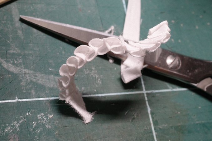 #フリル地獄 に発狂寸前。フリル折るのも地獄だし起こすのも地獄もう6時間以上やってるもうやめたいもう寝たいおなかへったでも狙ったとおりに立体化してきててやめられないたすけて #ふわぬいカスタム #ぬいぐるみ撮影60分一本勝負