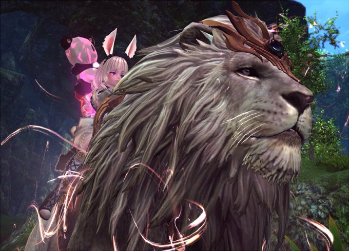 TERAクラシック鯖の選べる乗り物、好みな予感がしたので白いライオンにしたんだけど、鞍の後ろに変なムキムキの男の彫像がくっついてることに気づいてしまって以来気になってしかたない。移動してる間ずっとこっち見てくる・・・イヤすぎる・・・