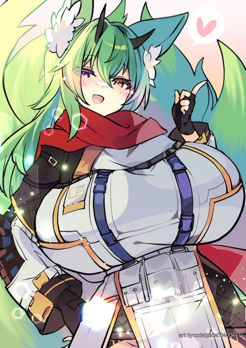【Skeb品】pyobboさんのキツネっ娘、TSUTSUNEちゃんを再び描かせていただきました~!!魅惑の大きなお胸を上下からむぎゅっと挟んで強調してくれるセクシーな服が最高です😍💓