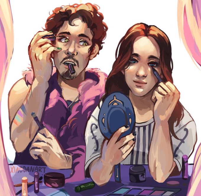 voidfish has such a TIGHT aesthetic so i pulled a princess jellyfish and drew the elves in some voidfish-inspired dresses #TheAdventureZone #thezonecast
