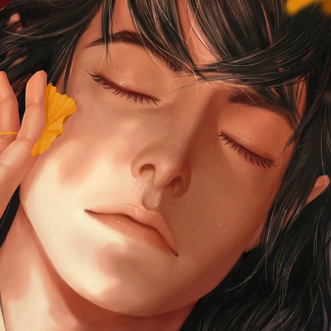 Sleep - Mo has fallen asleep in Bai’s lap. I’m pretty sure Bai would pinch his cheeks lol. It’s autumn here, so many colors xD.
