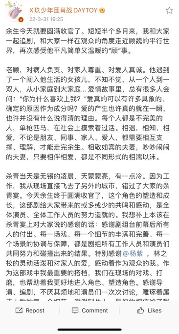 220331 Xiao Zhan Weibo Updated