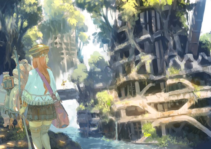 @RabbitThoughts Imperial Boy (@tksn4tt)'s artwork has always struck me as "authentically" solarpunk - there's an implication of rebuilding after a previous collapse, where humans live in expressive harmony with nature but aren't just vainly its masters