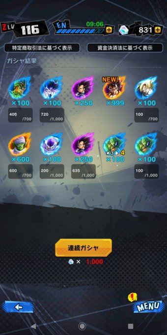 ナケナシの1000個を使って10連! なんと、ゴジータ×999が降臨してくれた…💕 赤属性のゴジータと組ませます☺️ #ドラゴンボールレジェンズ