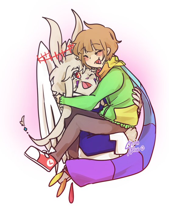 I managed to finish one doodle and flat coloring the characters for that one beeg comm :'))