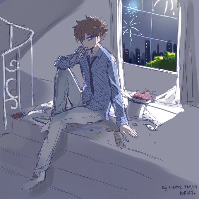 30天的創作:Day 5.角色與他的愛人或摯友爭吵后的狀態。偶爾畫一下快青也特別滿足自己的少女心hahaha